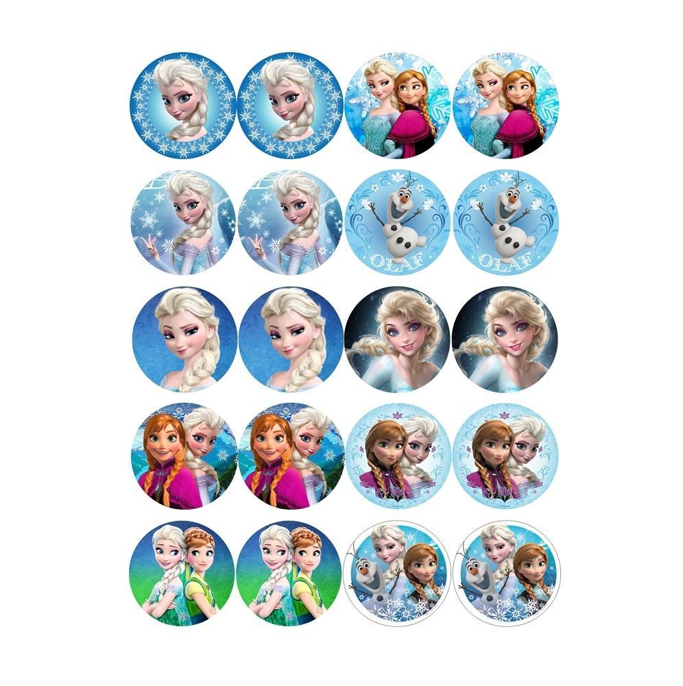 Opłatki z wafla na muffinki z motywem Krainy Lodu.