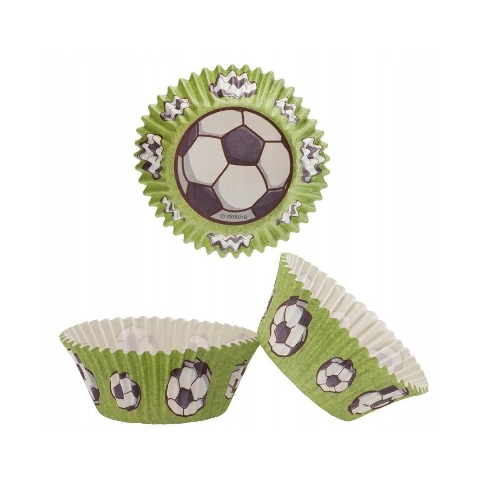 Wysokiej jakości papierowe papilotki na muffinki z motywem piłki nożnej.