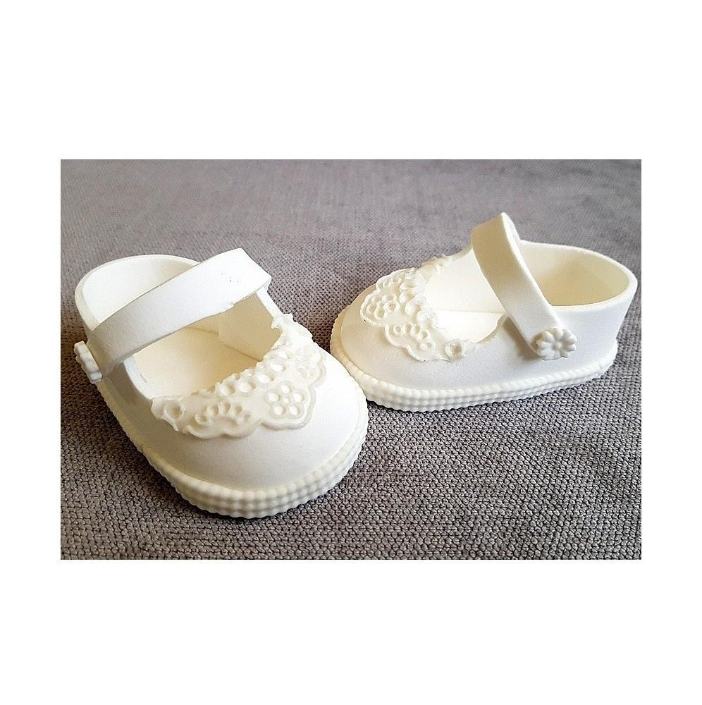 Piękna para bucików z koronką z cukru na chrzest dziecka