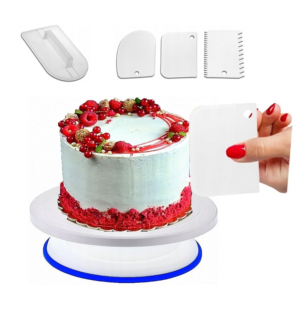 Patera Obrotowa Talerz Do Dekoracji Tortu 28 cm +Szpatułki+Szpatuła