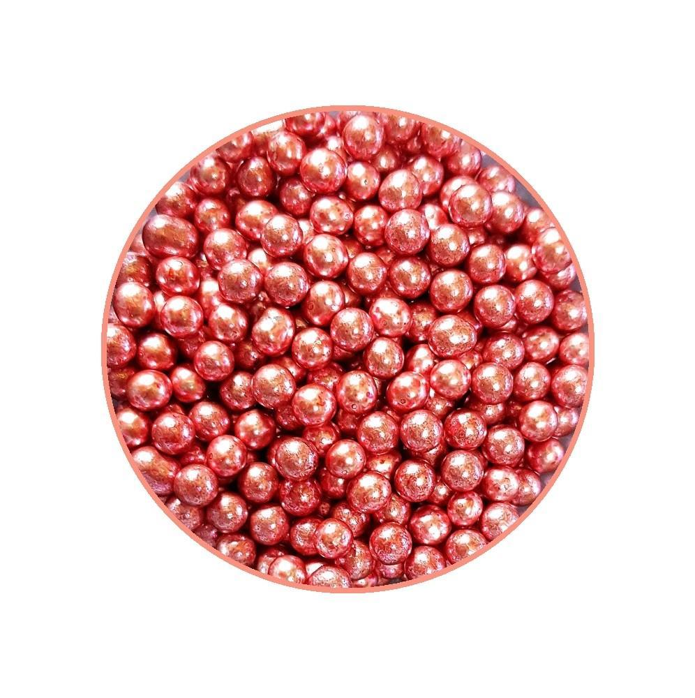Perełki cukrowe metaliczne różowe 5mm to przepiękne ozdoby które możemy stosować do dekoracji tortów, ciast, pierniczków, muffinków oraz ciasteczek i babeczek. Perełki zostały wykonane z najlepszej jakości cukru oraz profesjonalnego barwnika spożywczego różowego. Dzięki tym wspaniałym perełkom każdy twój wypiek nabierze fenomenalnego wyglądu wizualnego. Poza olśniewającym wyglądem perełki cechuje również niezwykły słodziutki smak. Perełki zostały zapakowane w wygodny plastikowy słoik.