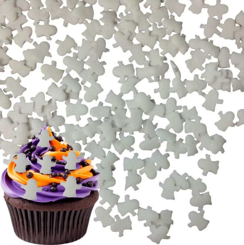Posypka cukrowa na Halloween w kształcie duszków to wyjątkowa dekoracja, która wprowadza zabawny, a jednocześnie tajemniczy klimat do wypieków. Starannie wykonane figurki w białym kolorze doskonale podkreślają atmosferę tego święta.