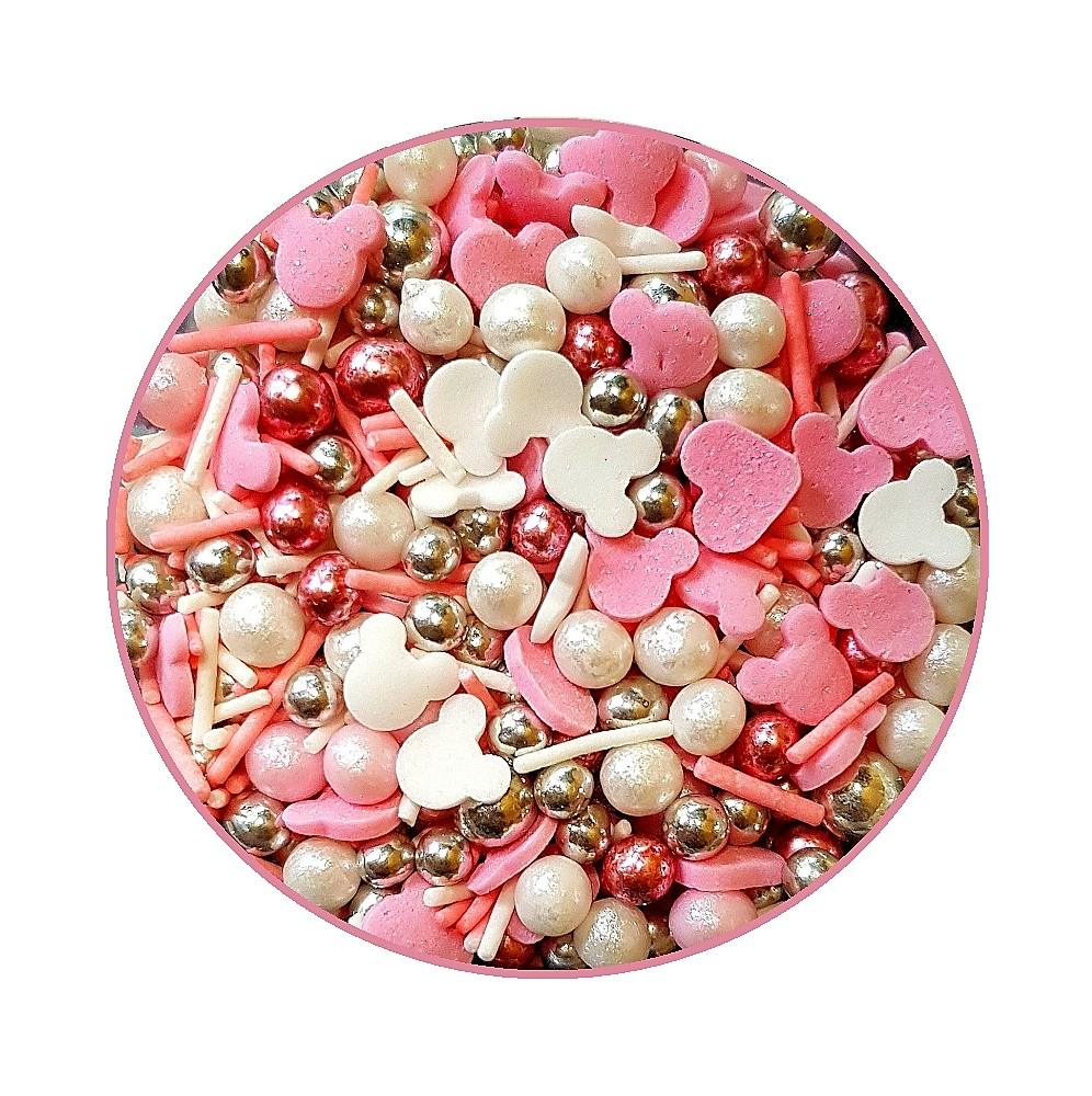 Fantastyczny mix posypek do udekorowania tortu z motywem Myszki Minnie.