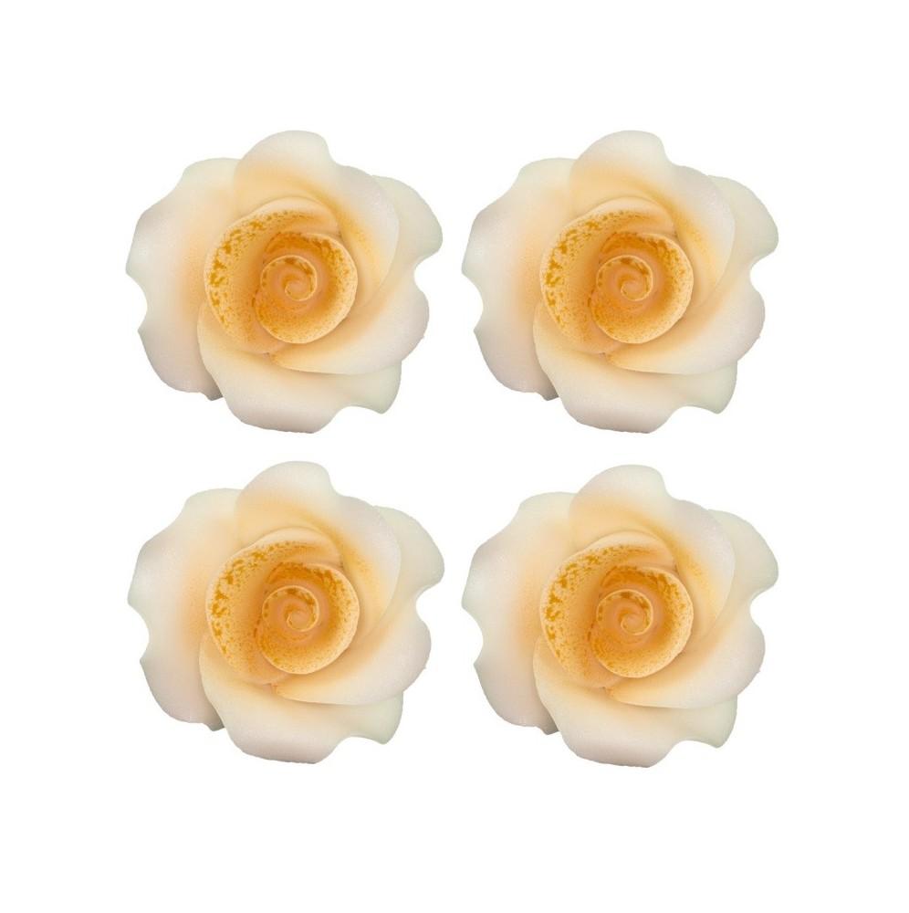 Piękna róża L koloru ecru (cieniowanego) to kwiat który w wyjątkowy sposób udekoruję Państwa tort urodzinowy. Róża została wykonana z pysznej i słodkiej masy cukrowej. Wyjątkowy kształt kwiatu oraz piękne kolory sprawiają iż róża wygląda jak żywa. Każda róża została ręcznie wykonana co świadczy o wysokiej jakości produktu. Rozmiar róży: średnica około 5cm, wysokość około 3cm. Róże sprzedawane są pojedynczo. Cena dotyczy 1-nej SZTUKI.