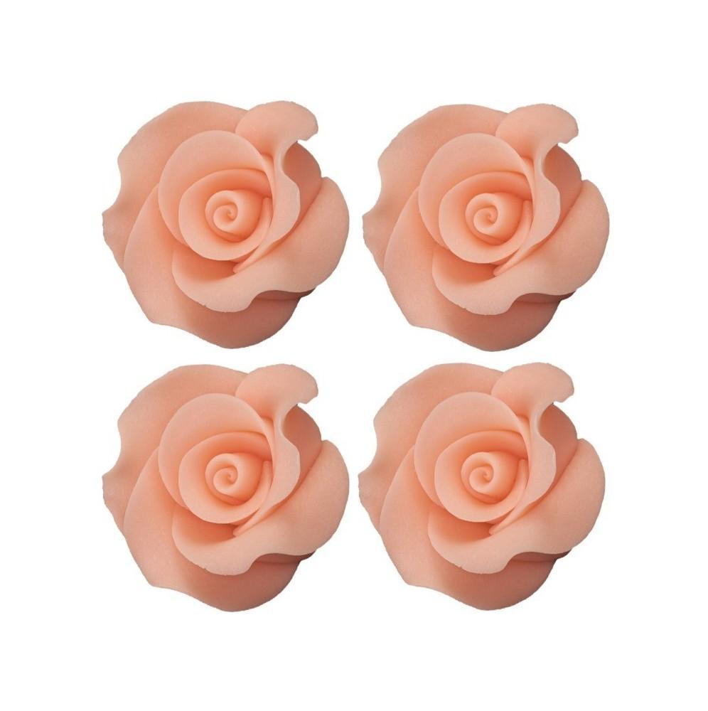 Piękna róża L koloru łososiowego to kwiat który w wyjątkowy sposób udekoruję Państwa tort urodzinowy. Róża została wykonana z pysznej i słodkiej masy cukrowej. Wyjątkowy kształt kwiatu oraz piękne kolory sprawiają iż róża wygląda jak żywa. Każda róża została ręcznie wykonana co świadczy o wysokiej jakości produktu. Rozmiar róży: średnica około 5cm, wysokość około 3cm. Róże sprzedawane są pojedynczo. Cena dotyczy 1-nej SZTUKI.