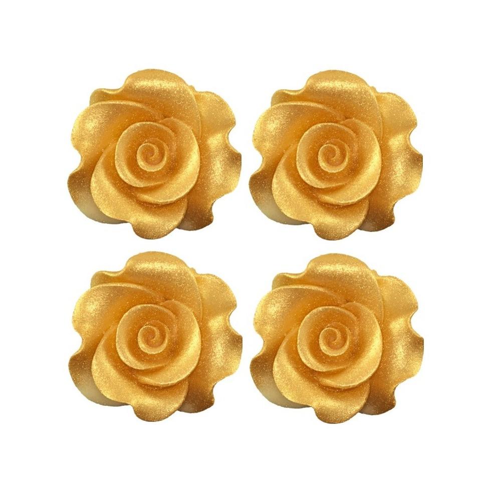 Piękna róża L koloru złotego to kwiat który w wyjątkowy sposób udekoruję Państwa tort urodzinowy. Róża została wykonana z pysznej i słodkiej masy cukrowej. Wyjątkowy kształt kwiatu oraz piękne kolory sprawiają iż róża wygląda jak żywa. Każda róża została ręcznie wykonana co świadczy o wysokiej jakości produktu. Rozmiar róży: średnica około 5cm, wysokość około 3cm. Róże sprzedawane są pojedynczo. Cena dotyczy 1-nej SZTUKI.