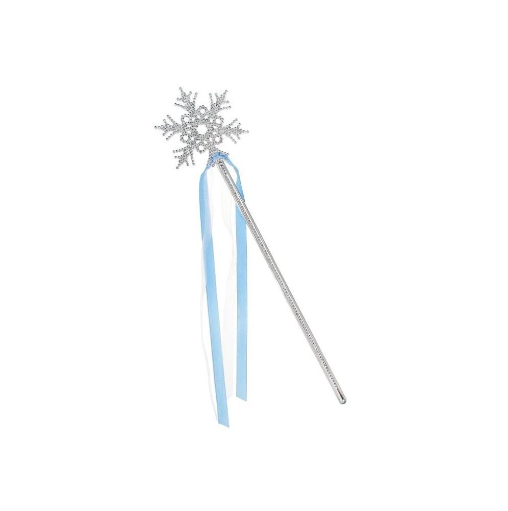Srebrna różdżka w kształcie sniezynki , zdobiona wklęsłymi kroplami, na wzór kryształków.