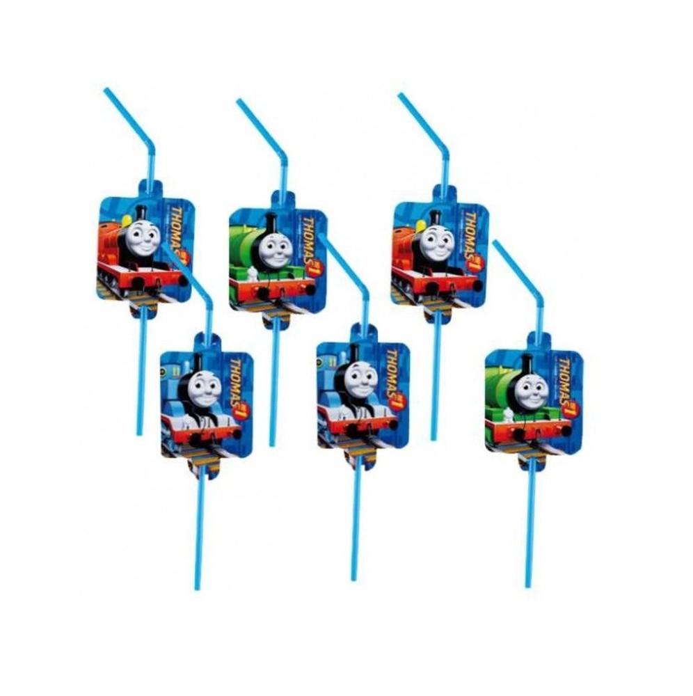 Plastikowe niebieskie zginane słomki. Każda słomka posiada wizerunek Tomka.
