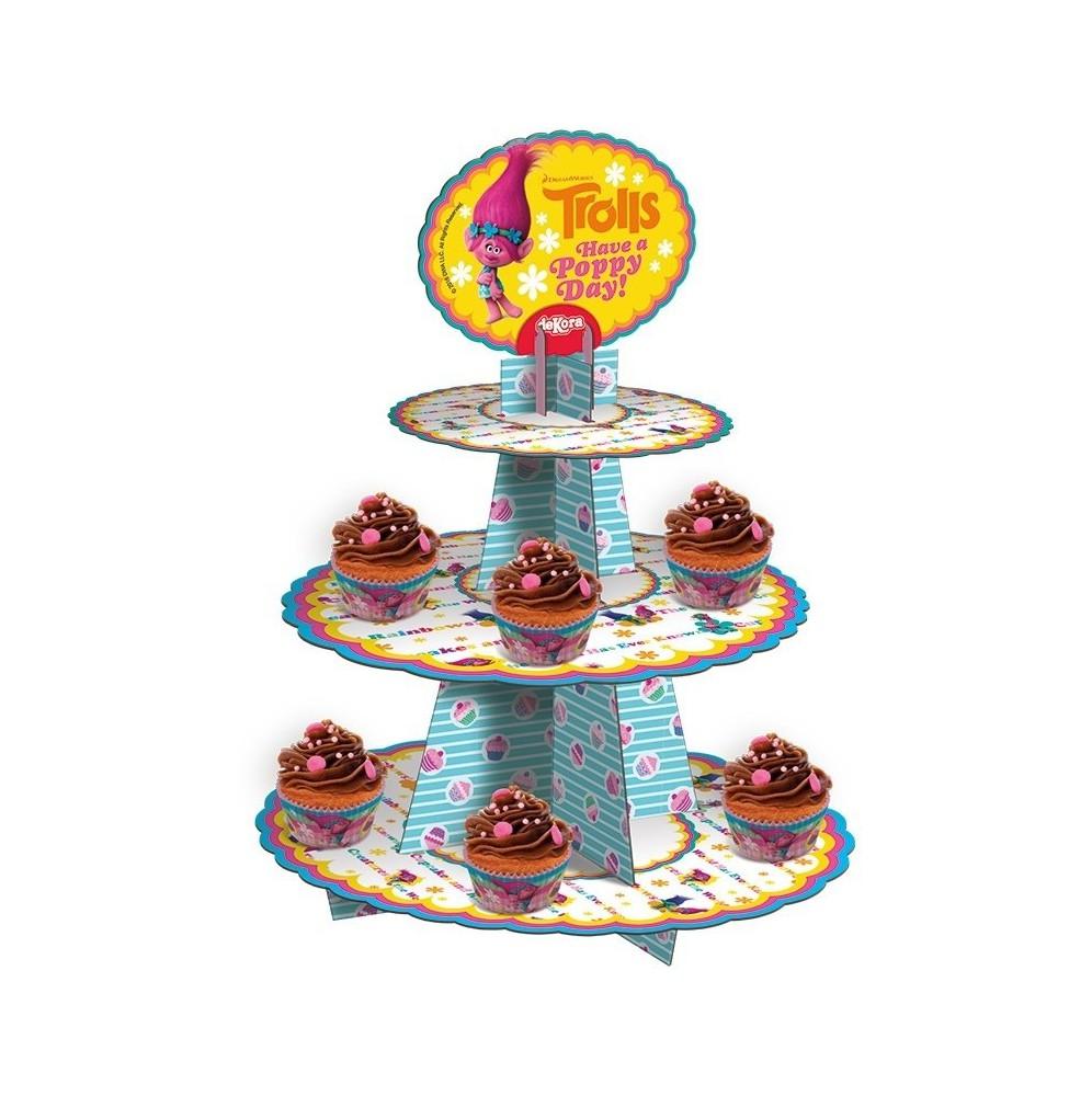 Elegancki i funkcjonalny stojak na muffinki z motywem Trolli.