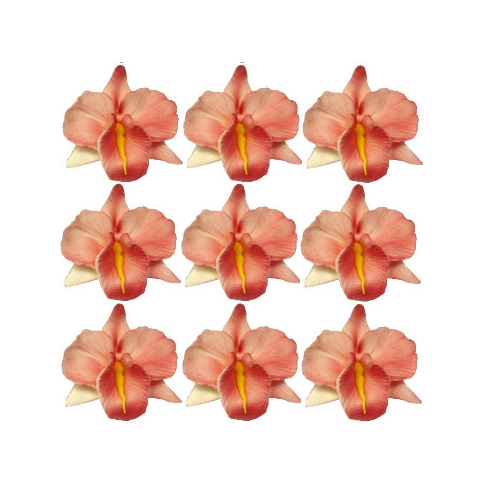 Storczyk zwykły koloru różowego to ręcznie robione kwiaty z cukru idealne do dekoracji ciast i tortów. Storczyki nadają się do spożycia. Kolorystyka oraz kształt kwiatów mogą nieznacznie odbiegać od przedstawionego zdjęcia. Cena dotyczy 10 sztuk.