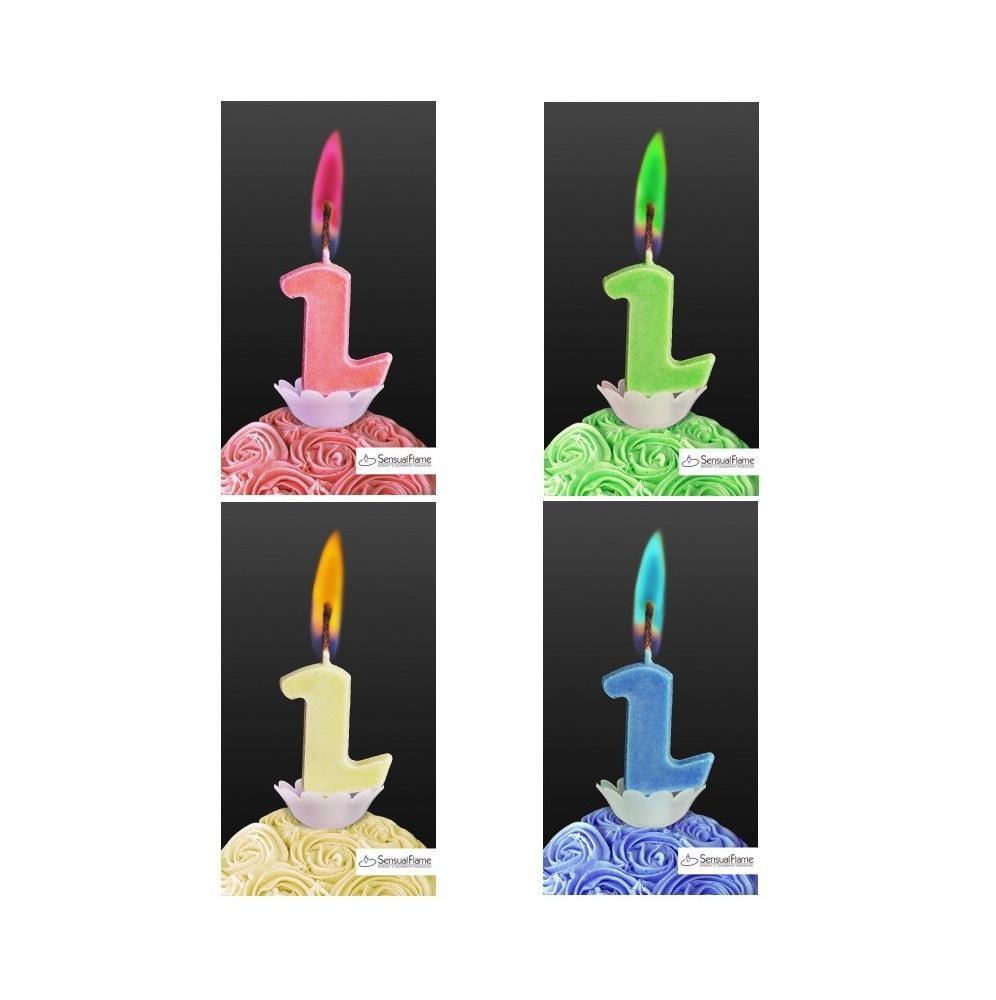 Niepowtarzalne kolorowe świeczki  w kształcie cyferek z kolorowym płomieniem.