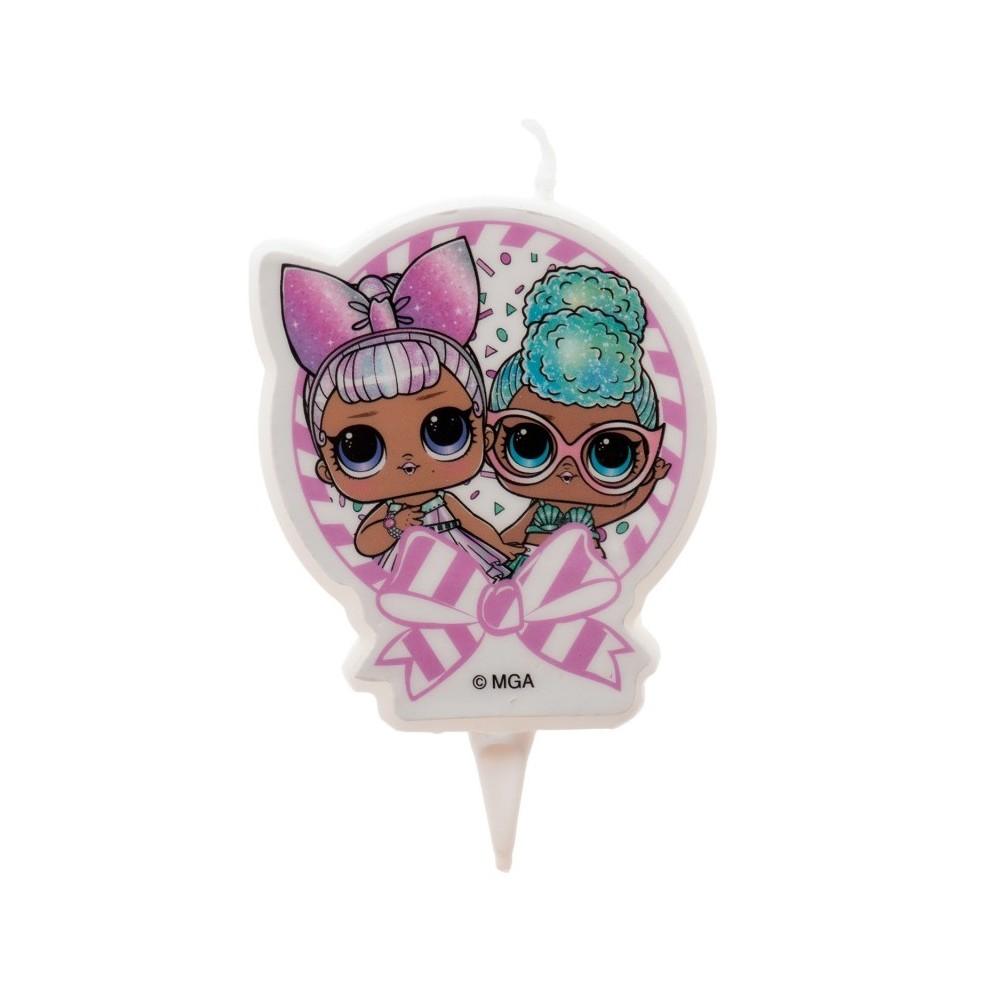 Fantastyczna świeczka urodzinowa na tort z motywem Lol Surprise.