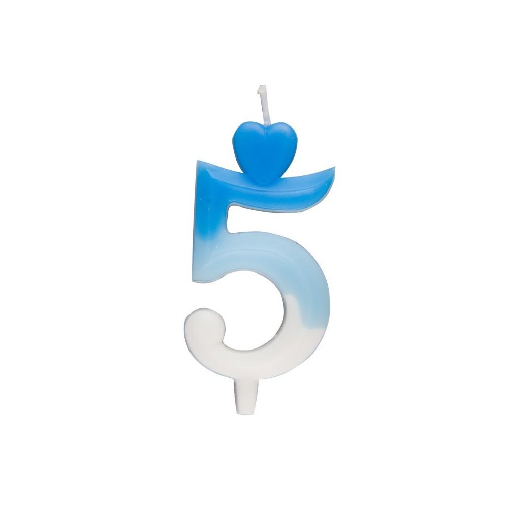 Świeczka urodzinowa cyferka biało-niebieska 5