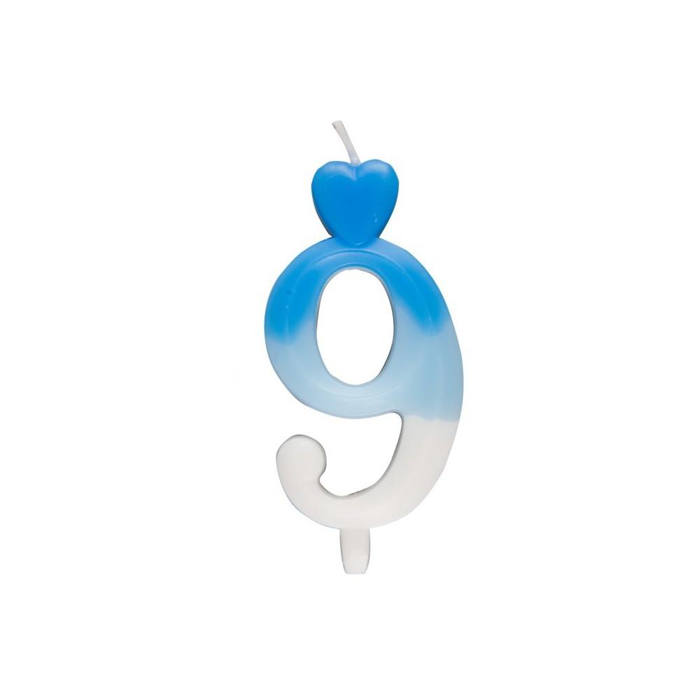 Świeczka urodzinowa cyferka biało-niebieska 9