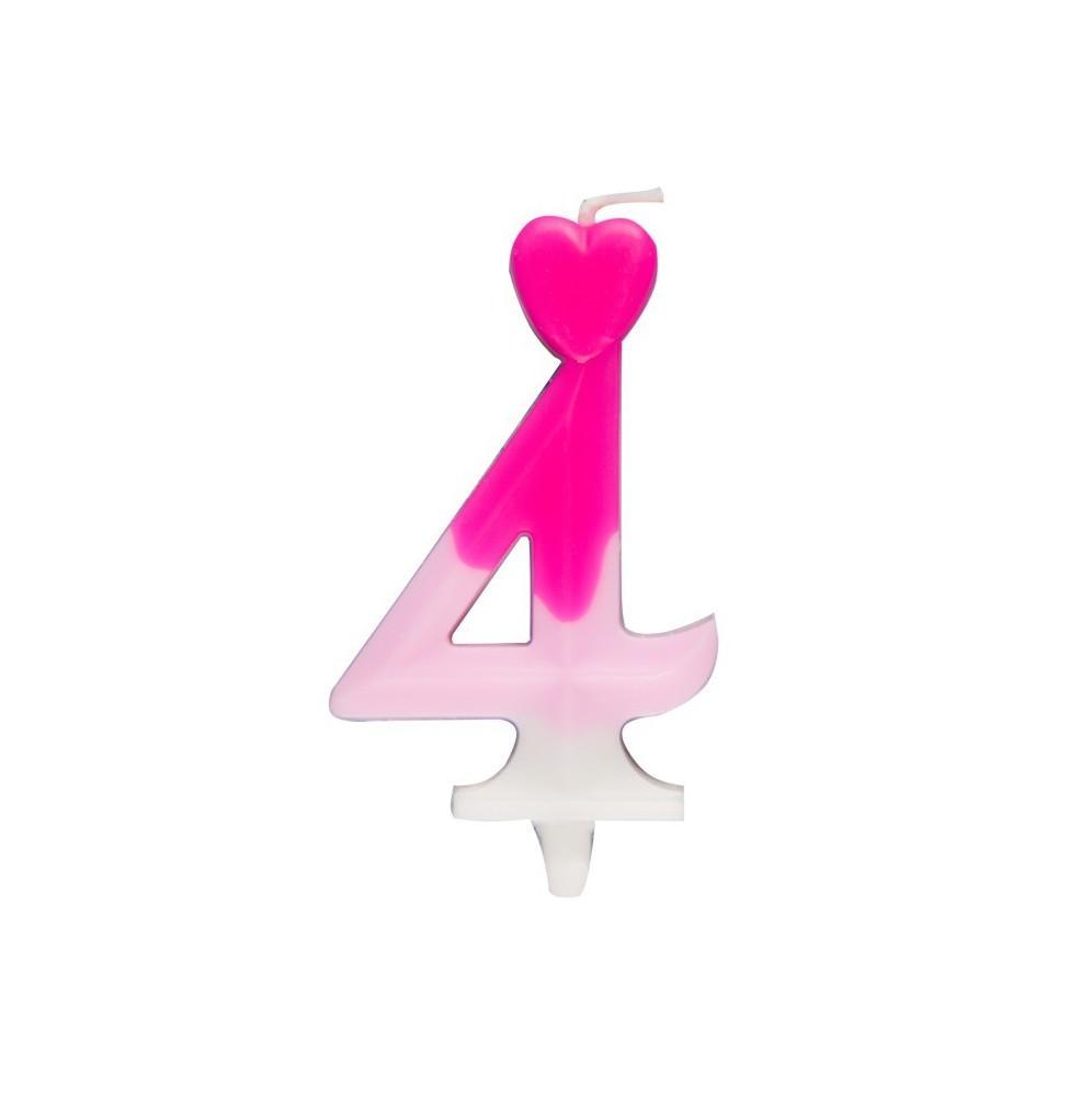 Doskonała świeczka urodzinowa w kształcie cyferki biało-różowej na każde przyjęcie urodzinowe.
