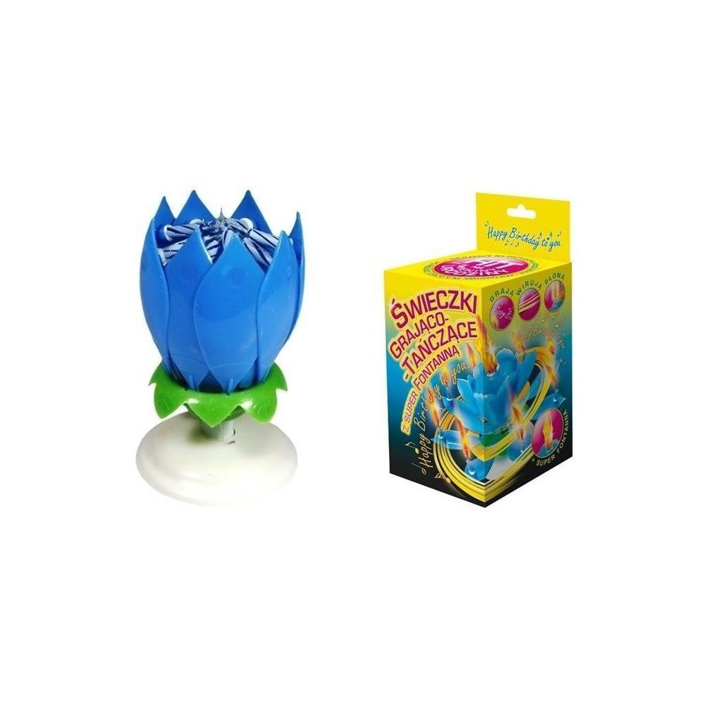 Świeczka grająco-tańcząca niebieska z super fontanną to wspaniały pomysł na podkreślenie atmosfery każdego przyjęcia urodzinowego. Tort wjeżdżający z taką dekoracją która wiruję, gra toast „STO LAT” oraz strzela fontanną iskier przyciągnie uwagę każdego gościa. Jesteśmy przekonani że taka świeczka urodzinowa idealnie sprawdzi jako dodatek do każdej ważnej imprezy urodzinowej lub rocznicowej.