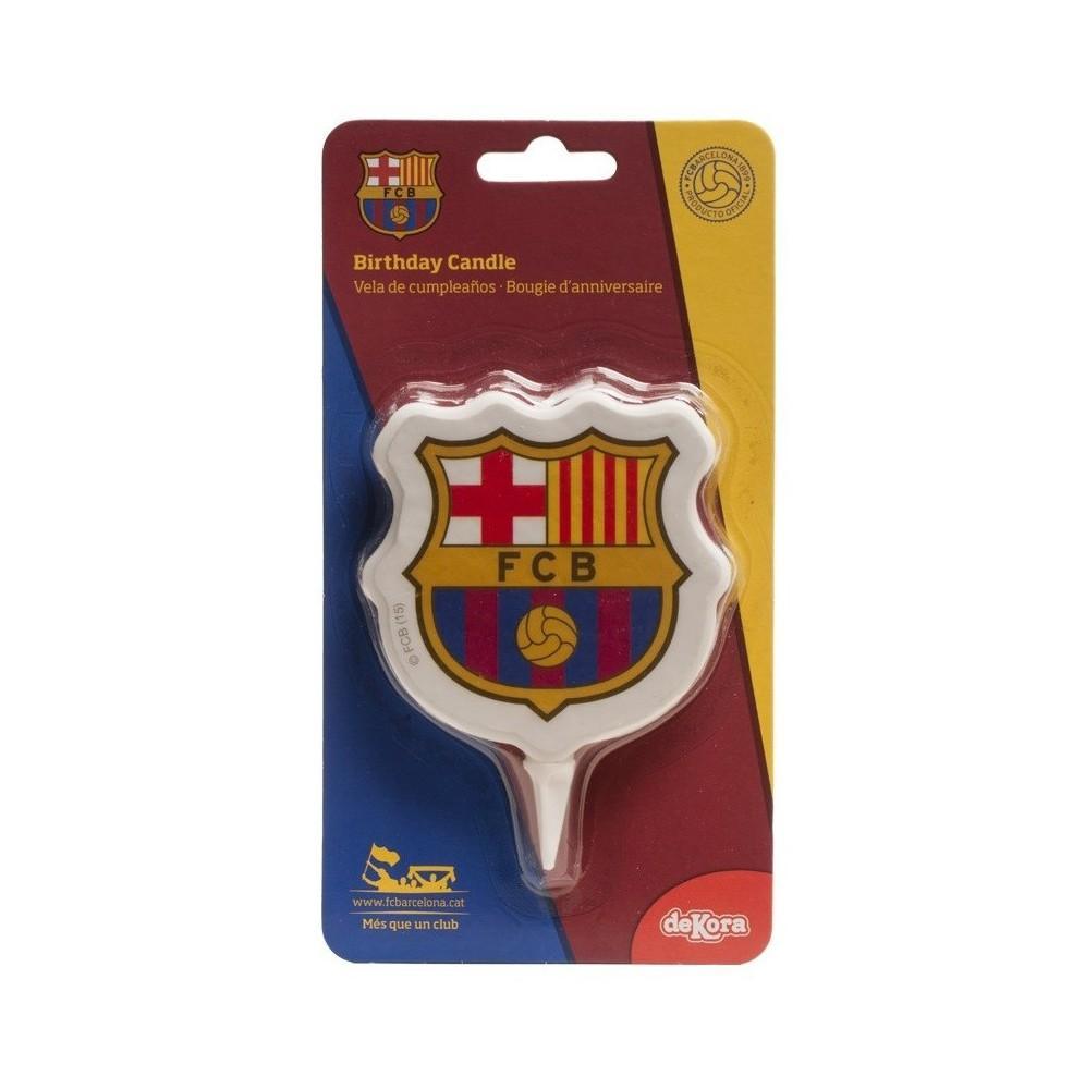 Fantastyczna świeczka urodzinowa na tort z motywem logo FC Barcelona.
