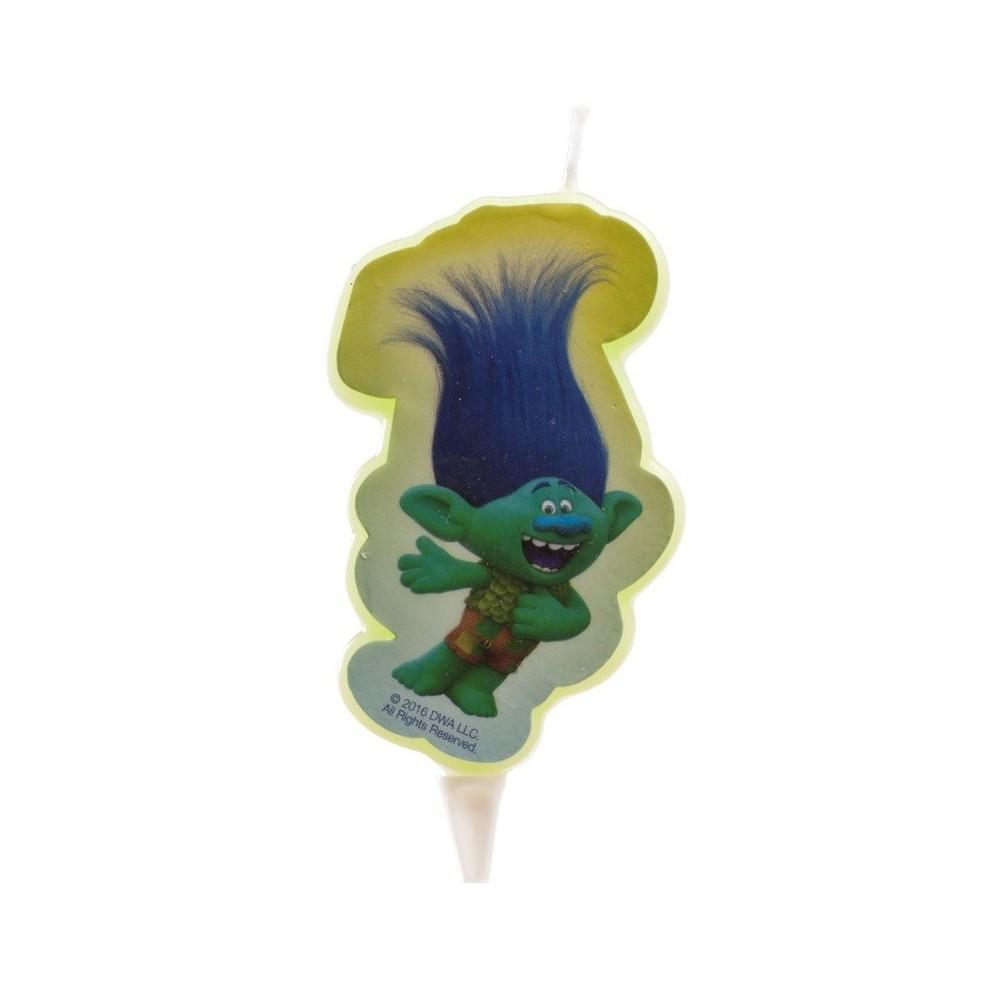 Fantastyczna świeczka urodzinowa na tort z motywem Trolli.
