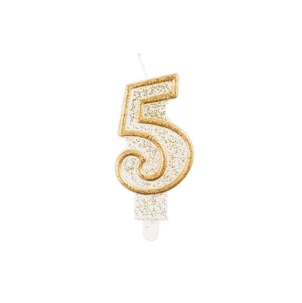 Świeczki Cyferki Na Tort Złoty Kontur-Numer 5