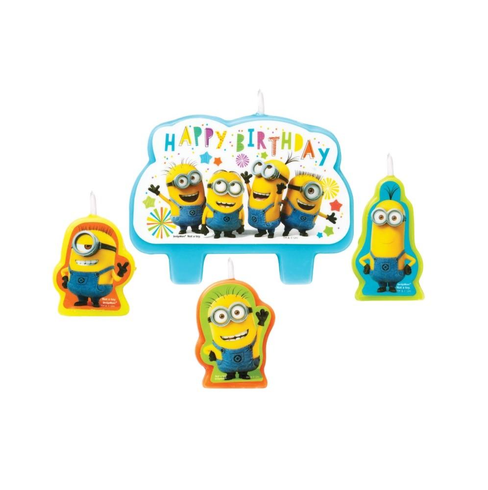 Wysokiej jakości świeczki urodzinowe z motywem Minionków na patyczkach do wbicia w tort.