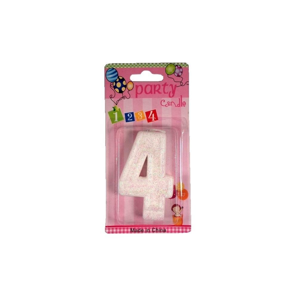 Doskonała świeczka urodzinowa w kształcie białej cyferki z brokatem na każde przyjęcie urodzinowe.