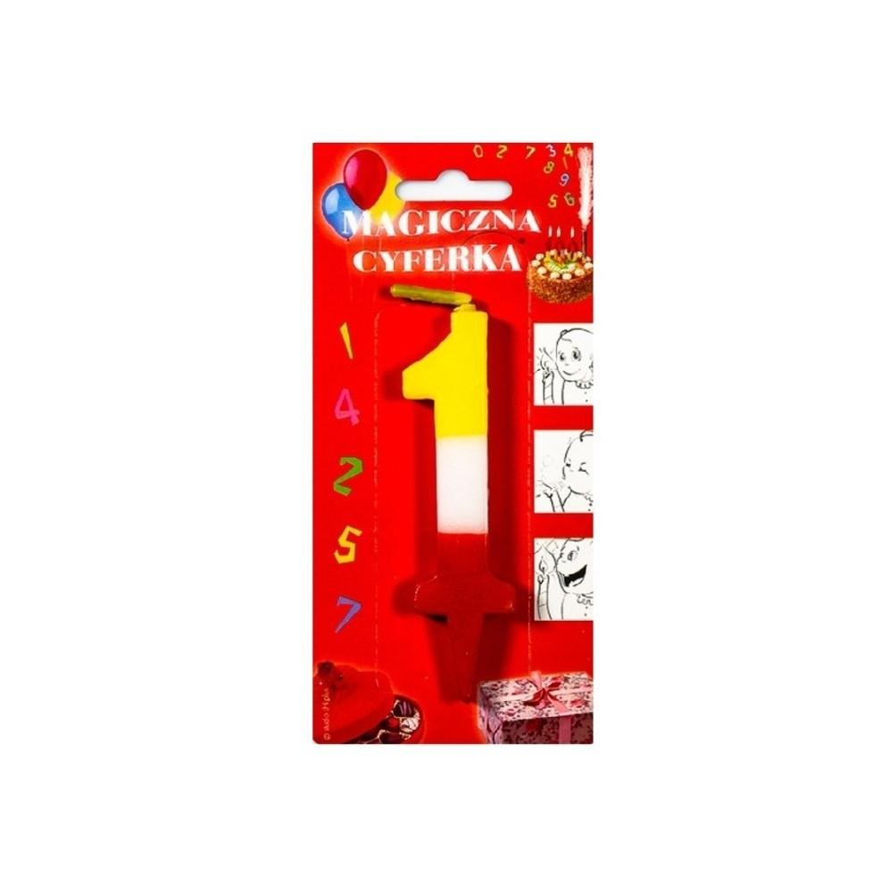Wyjątkowa świeczka urodzinowa w kształcie cyferki wykonana z trójkolorowego wosku która po zdmuchnięciu samoistnie się zapala. Dzięki zabawnemu charakterowi tej świeczki zaskoczysz wszystkich gości. Cyferka przestanie się zapalać dopiero po odcięciu knota świeczki.