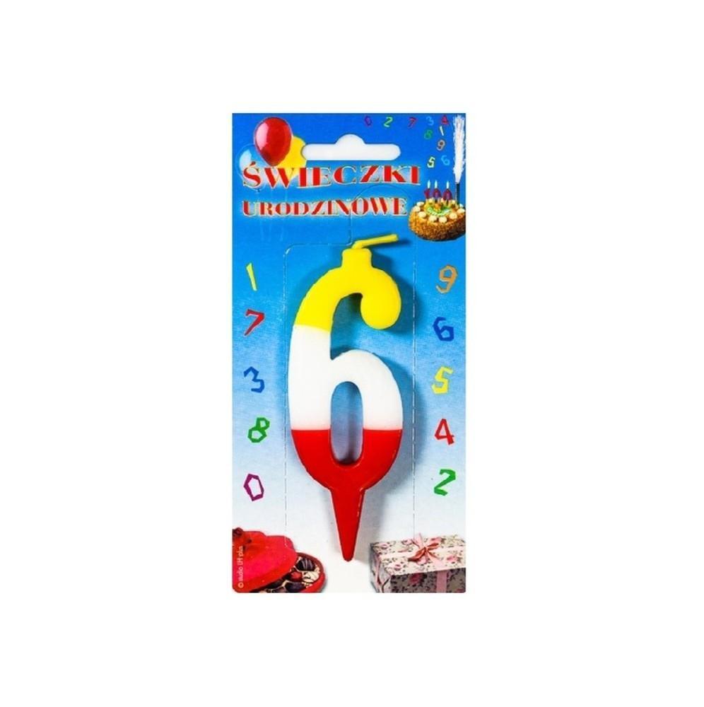 Świeczki urodzinowe cyferki trójkolorowe 6