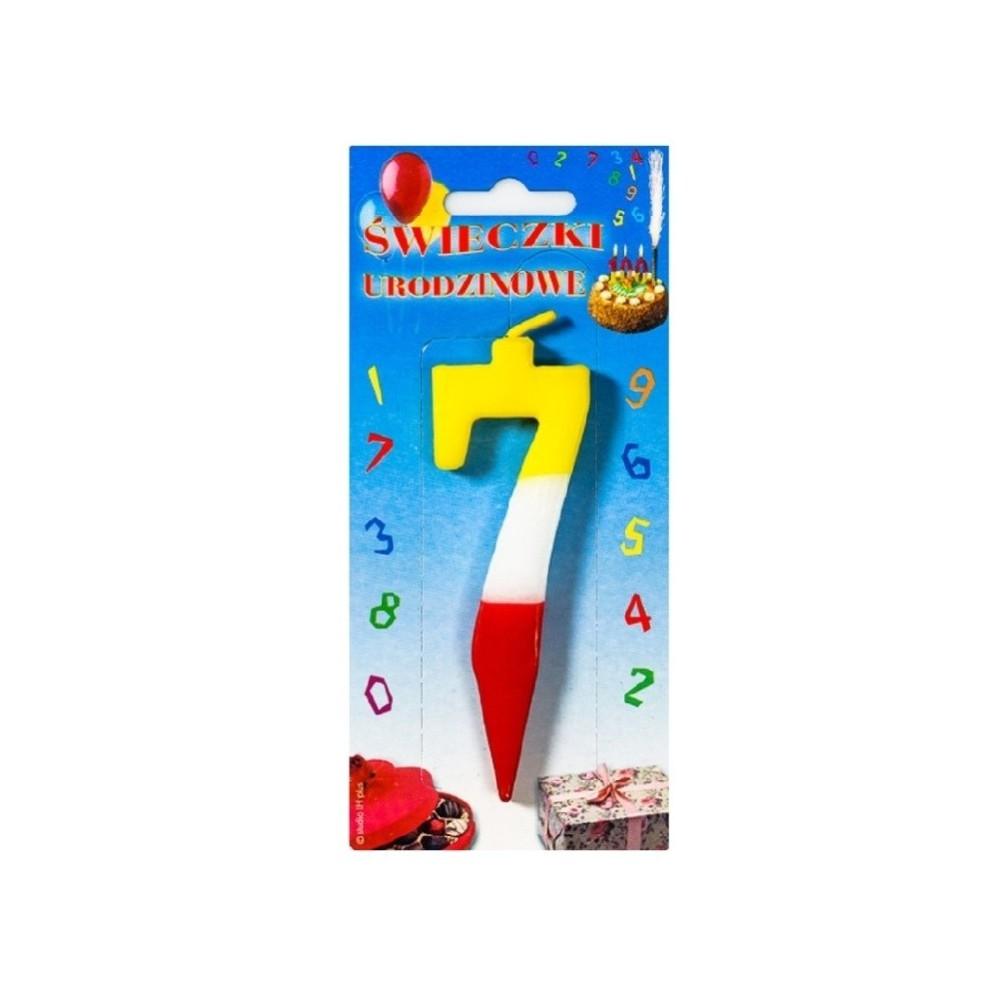 Świeczki urodzinowe cyferki trójkolorowe 7