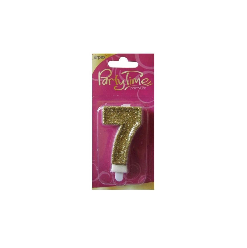 Doskonała świeczka urodzinowa w kształcie cyferki w złotym brokacie na każde przyjęcie urodzinowe.