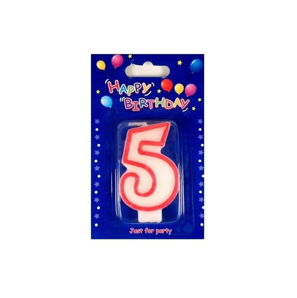 Świeczki urodzinowe cyferki z czerwonym konturem 5