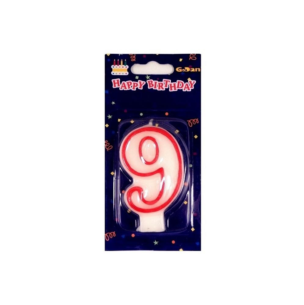 Świeczki urodzinowe cyferki z czerwonym konturem 9