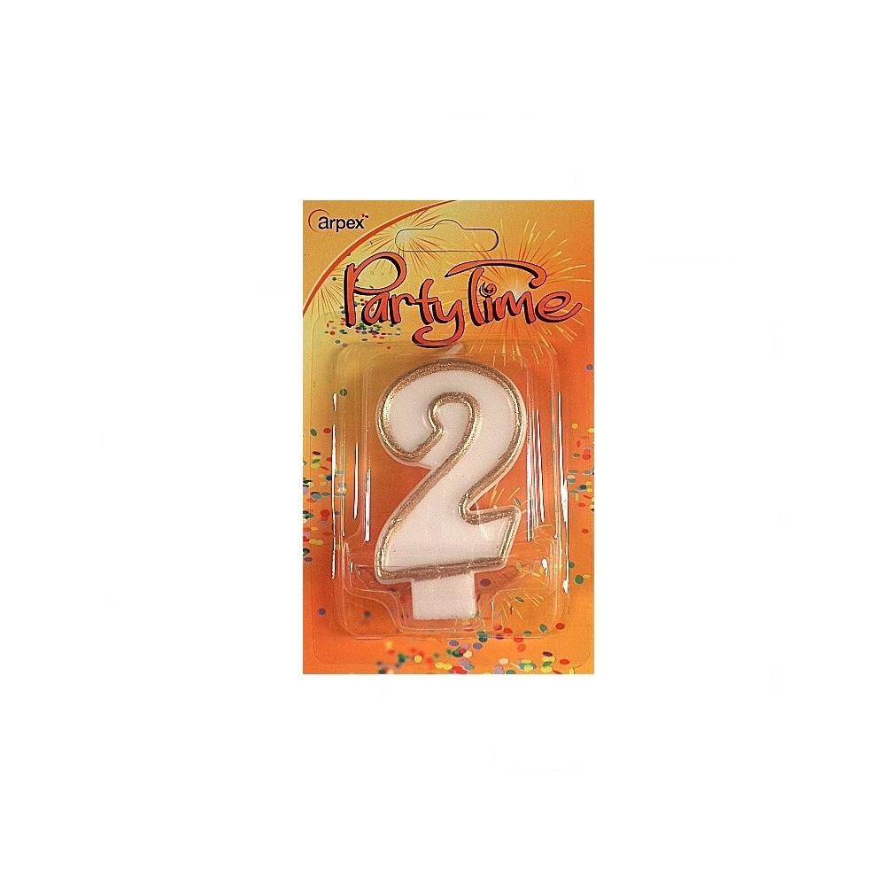 Świeczki urodzinowe cyferki ze złotym konturem 2