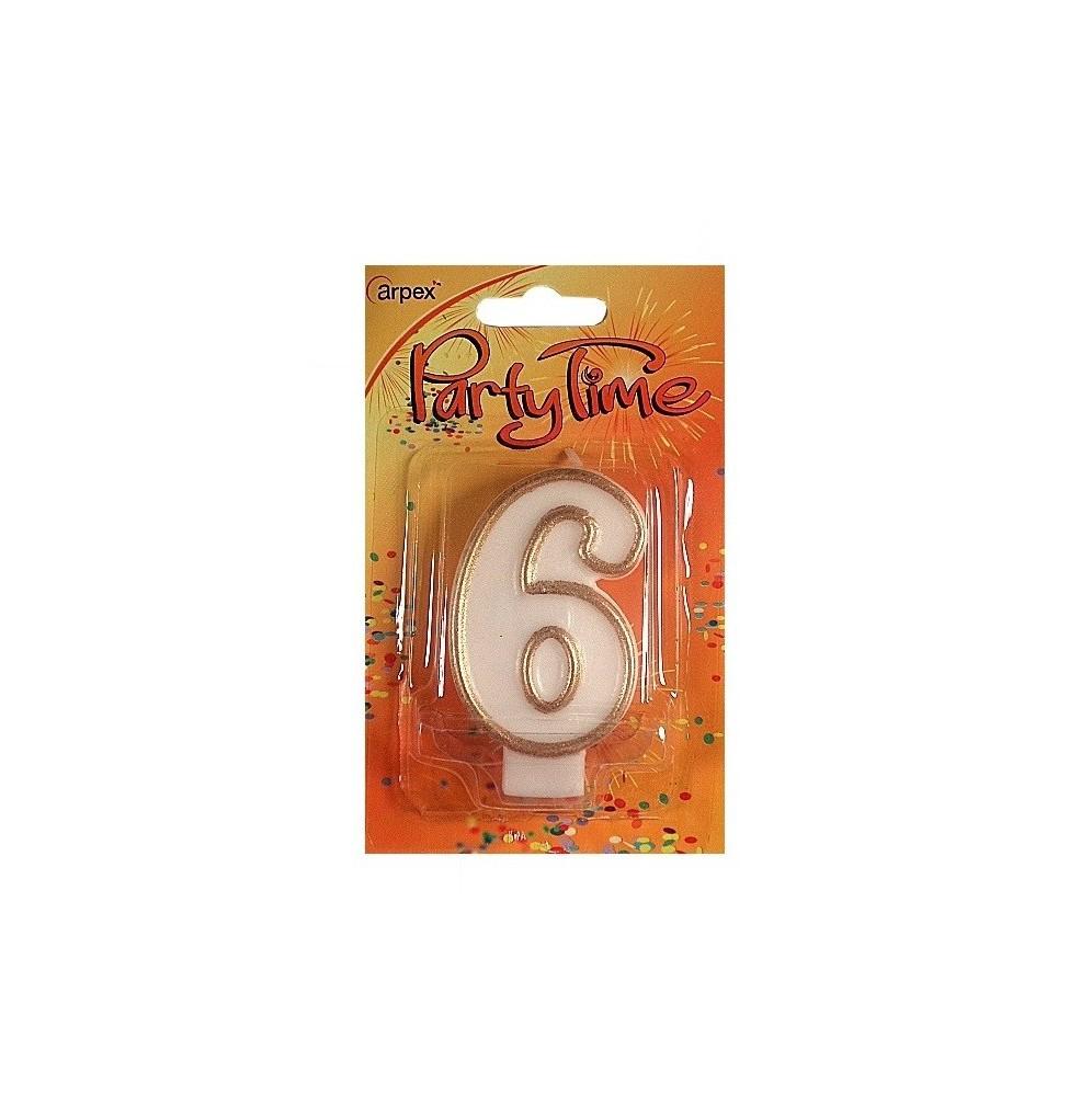 Świeczki urodzinowe cyferki ze złotym konturem 6