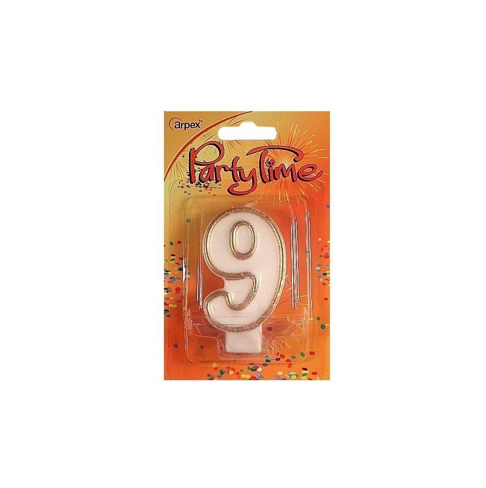 Świeczki urodzinowe cyferki ze złotym konturem 9
