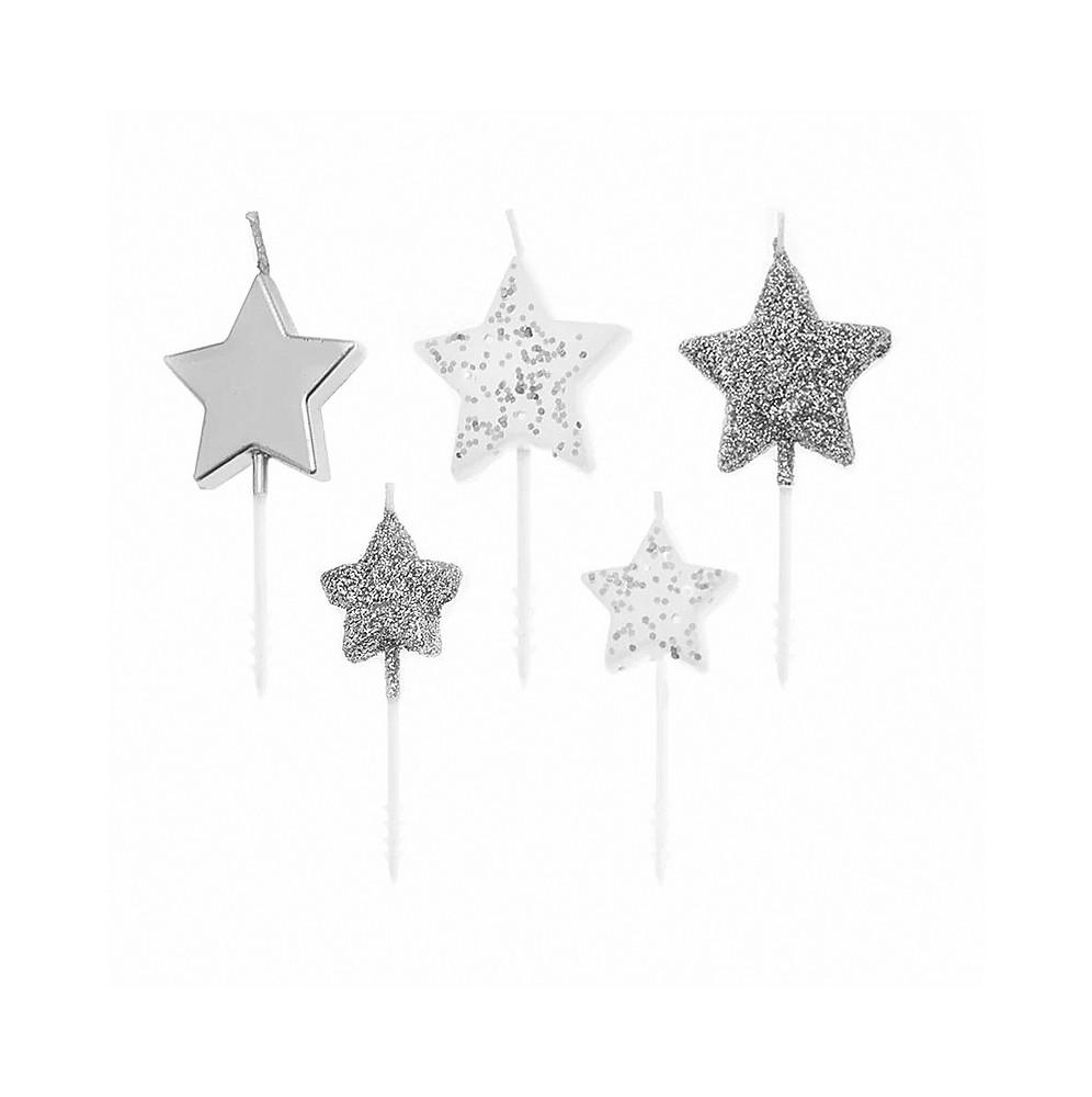 Świeczki Urodzinowe Gwiazdki Srebrne Brokat PAL