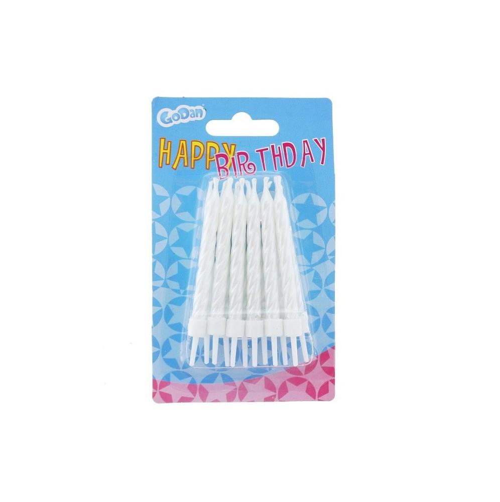 Wyjątkowe i bezkonkurencyjne świeczki urodzinowe klasyczne w kolorze białym razem z podstawkami.