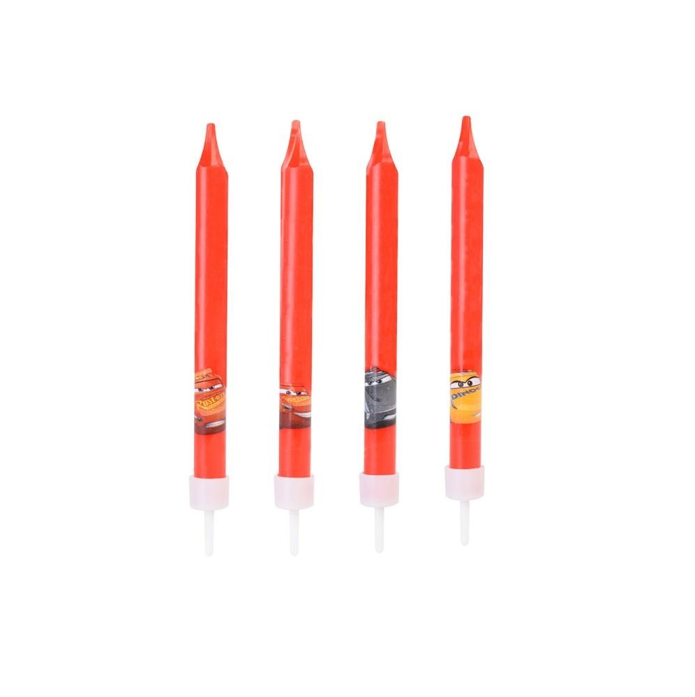 Fantastyczne świeczki urodzinowe z motywem Carsów razem z podstawkami.