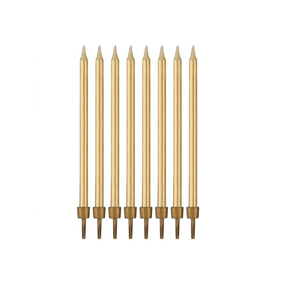 Świeczki Urodzinowe na Tort Długie Złote 8 szt.-10 cm