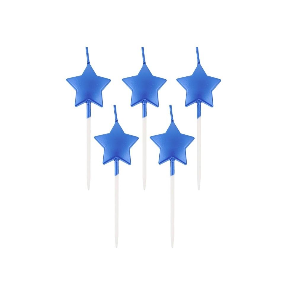 Świeczki Urodzinowe Pikery Gwiazdki Niebieskie-5 szt.