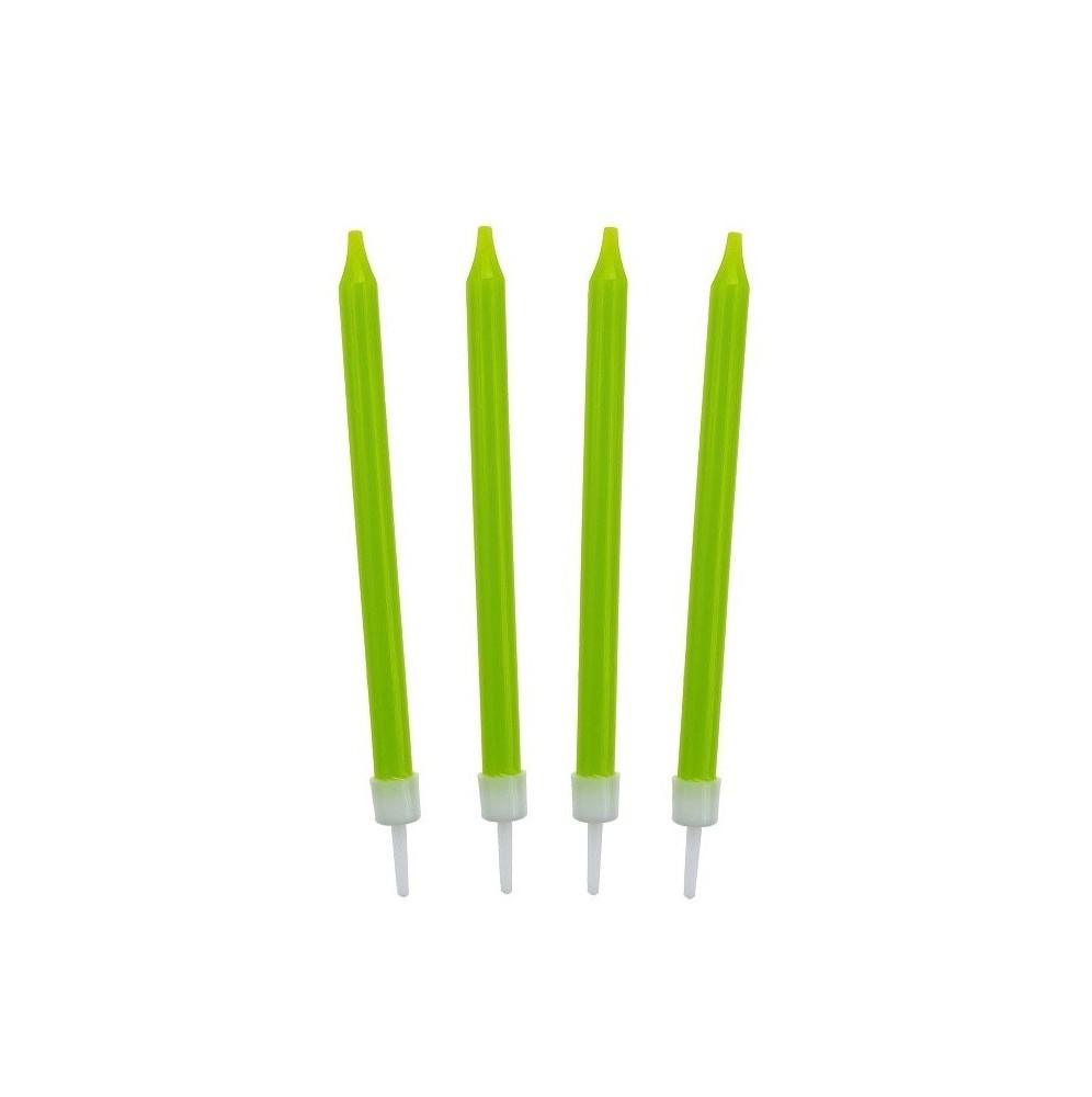 Fajne gładkie świeczki urodzinowe z podstawkami koloru zielonego do dekoracji tortu.