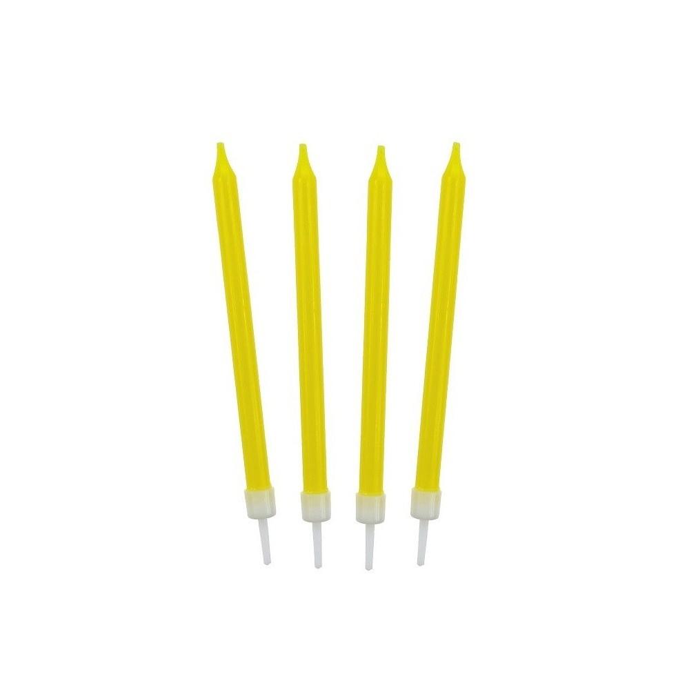 Fajne gładkie świeczki urodzinowe z podstawkami koloru żółtego do dekoracji tortu.