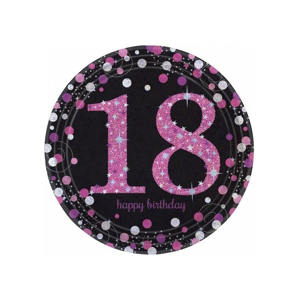 Talerzyki papierowe-18lat-różowe-23cm 8 sztuk