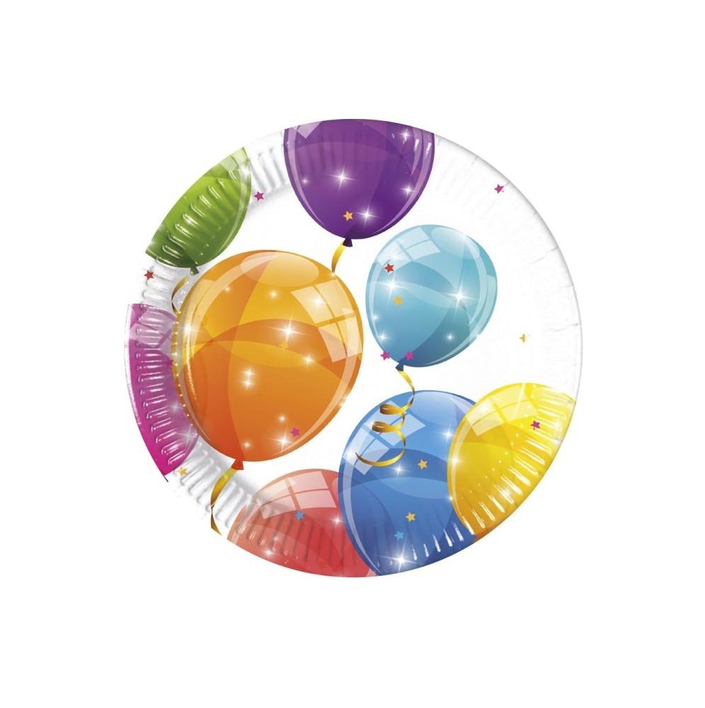 Talerzyki Papierowe Błyszczące Baloniki 19,5 cm