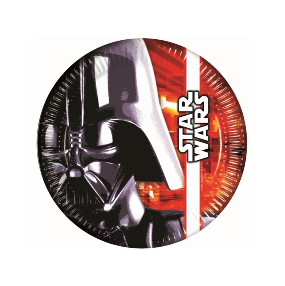Niepowtarzalne jednorazowe talerzyki urodzinowe z motywem Gwiezdnych Wojen.  Fantastyczny dodatek do imprezy urodzinowej dla Naszych małych pociech.