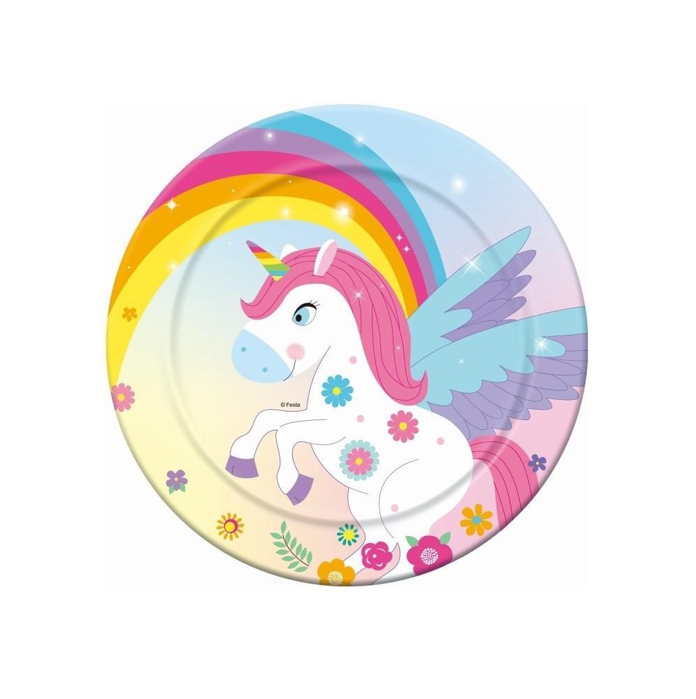 Niepowtarzalne jednorazowe talerzyki urodzinowe z motywem Jednorożca.
