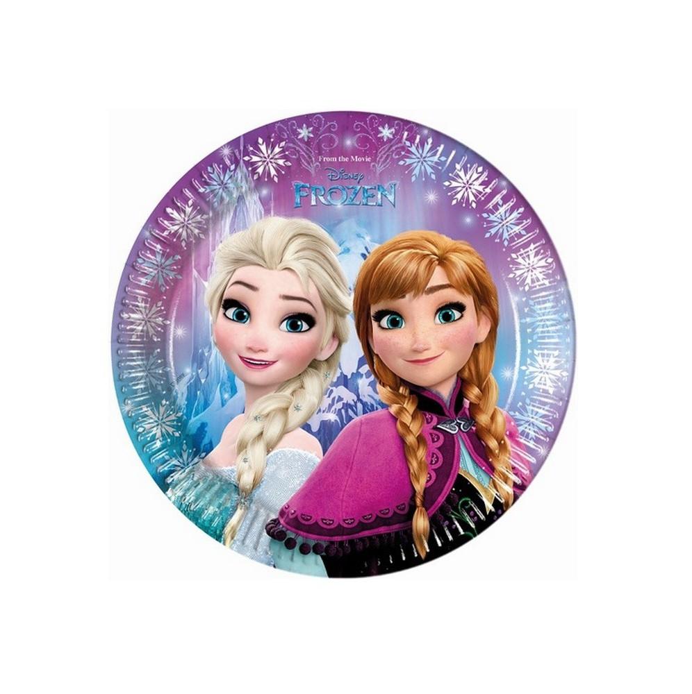 Niepowtarzalne jednorazowe talerzyki urodzinowe z motywem popularnej Krainy Lodu. Fantastyczny dodatek do imprezy urodzinowej dla Naszej małej pociechy.