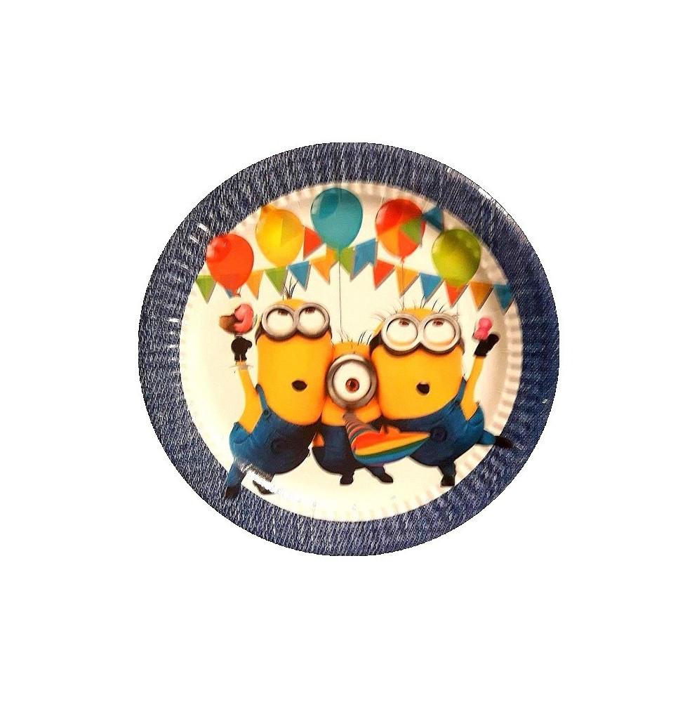 Niepowtarzalne jednorazowe talerzyki urodzinowe z motywem Minionków.