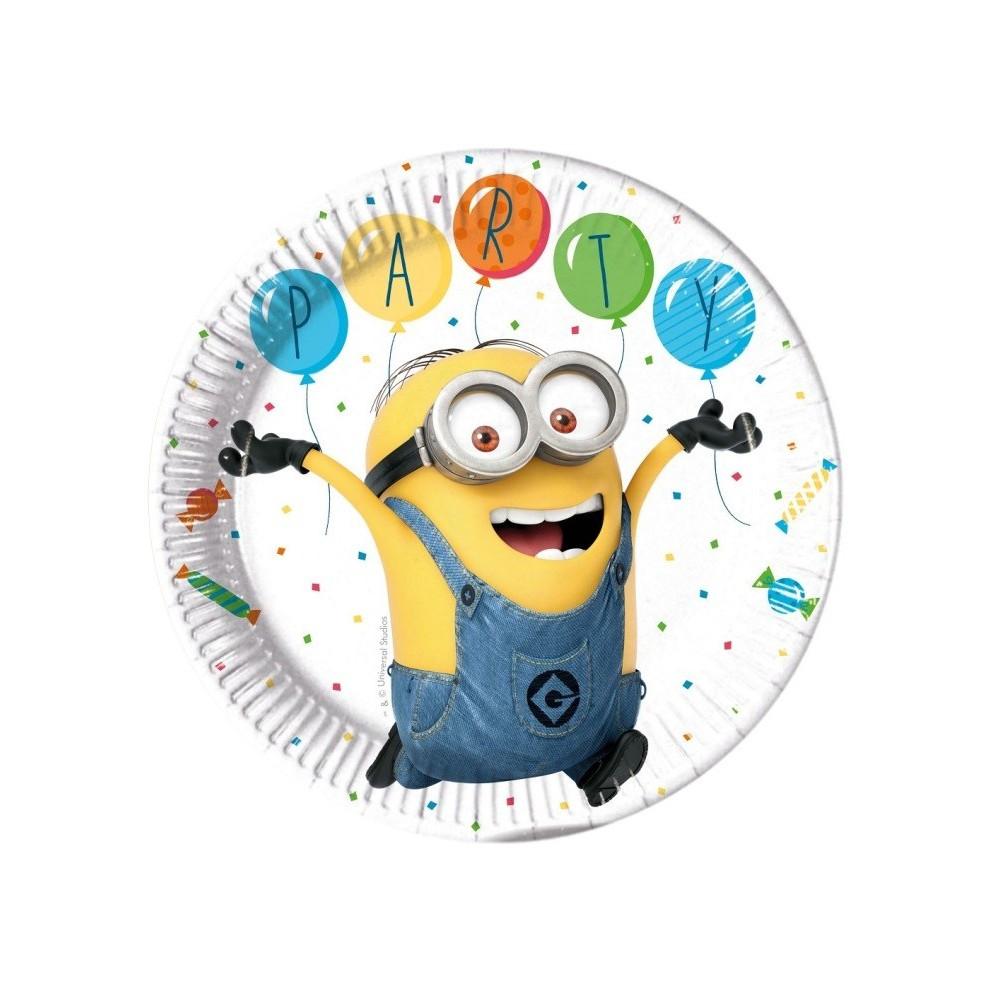 Niepowtarzalne jednorazowe talerzyki urodzinowe z motywem popularnych Minionków. Fantastyczny dodatek do imprezy urodzinowej dla Naszej małej pociechy.
