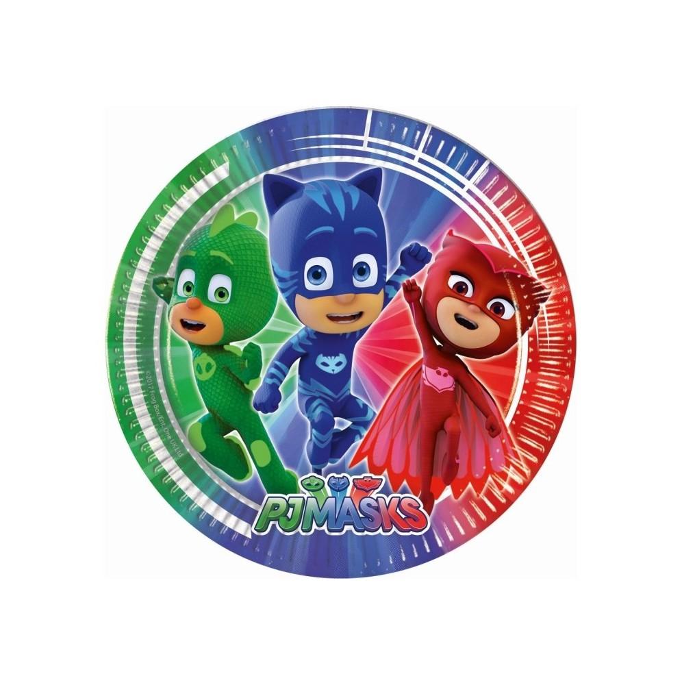 Niepowtarzalne jednorazowe talerzyki urodzinowe z motywem popularnych Pidżamersów. Fantastyczny dodatek do imprezy urodzinowej dla Naszej małej pociechy.