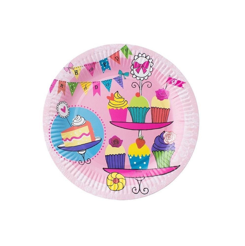 Urodzinowe kolorowe talerzyki papierowe Słodka Chwila. W opakowaniu 6 sztuk.